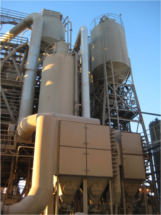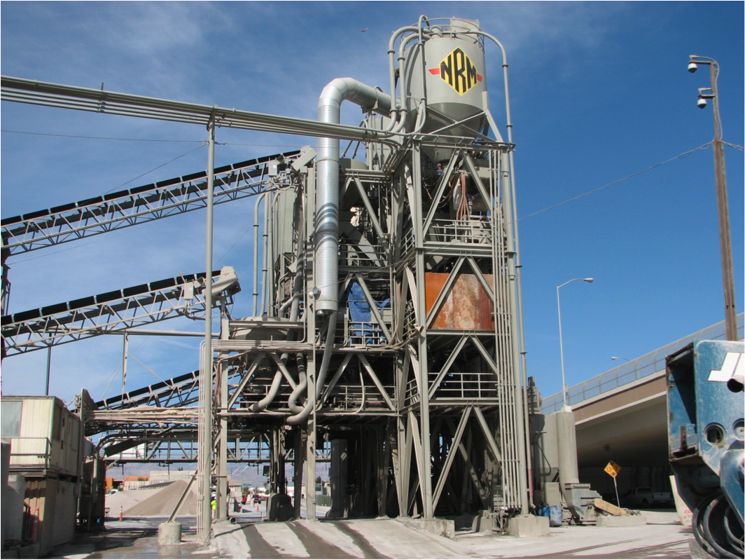 Dust control system of 30000 cfm for a batch plant capable of producing 600 cuyd/h.