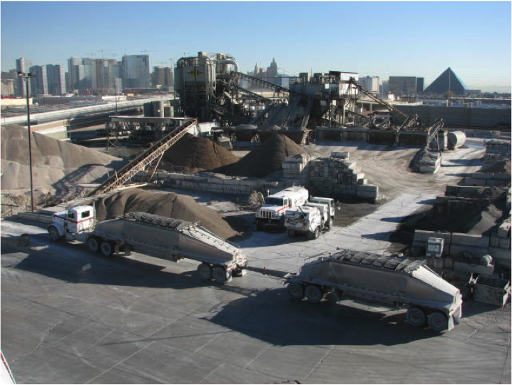 Batch plant layout and stocking project with traffic patterns, replenishing rates and 30 ton/day ice production facility that injects directly into the batch plant.