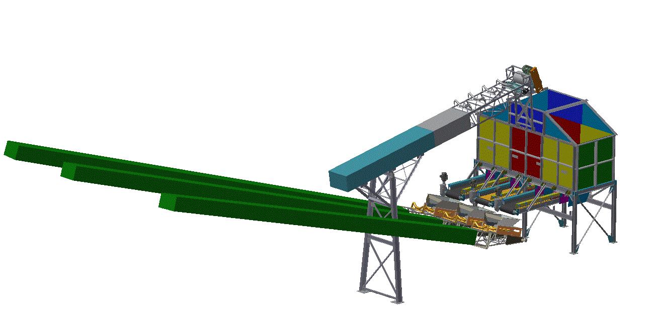 Equipment designed to produce 60 tons/h of a mixture for placement in USGA greens. Included process design, equipment design, intelligent control and fabrication management.